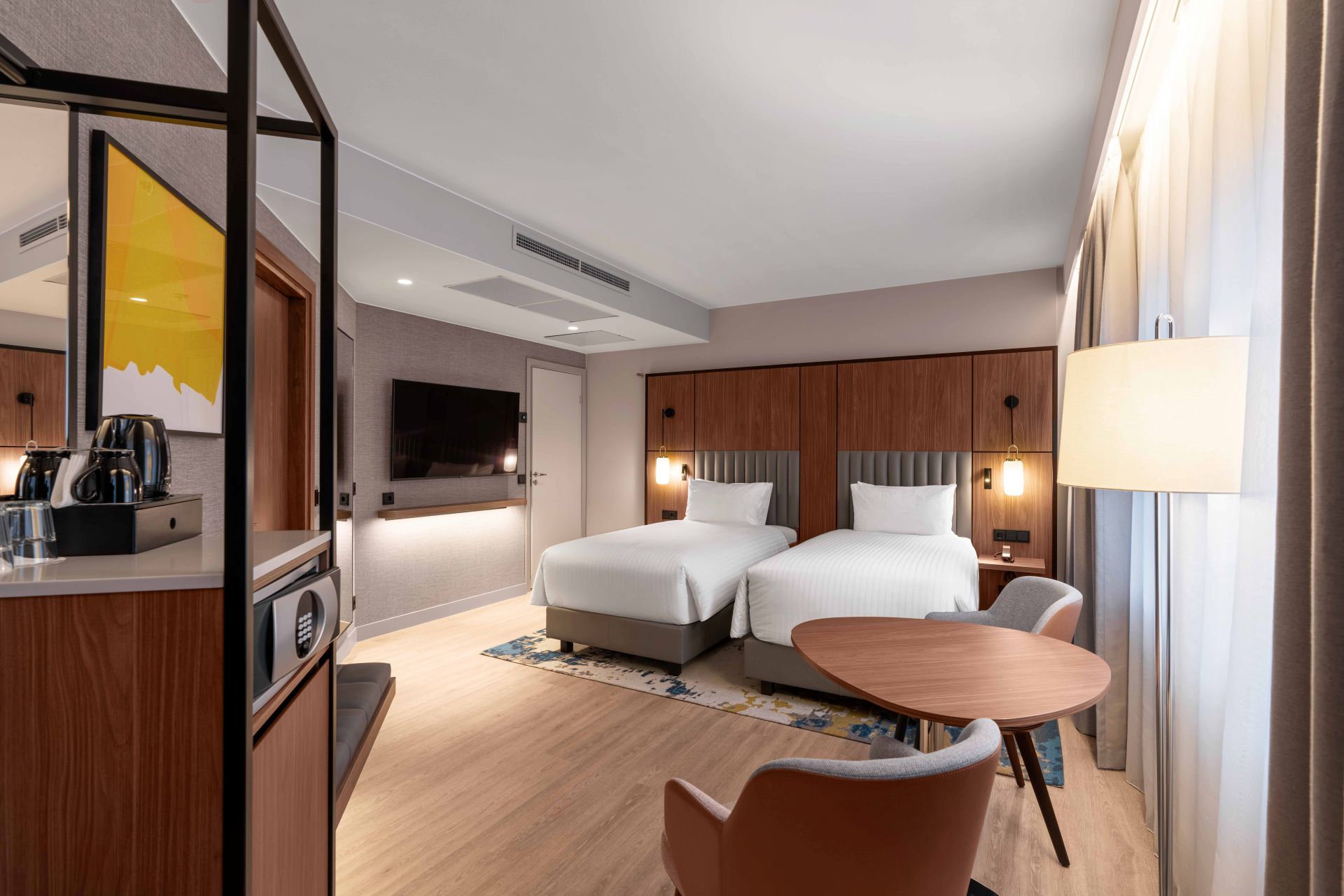 Our Standard Twin, ranging from 20-25 sqm, offer a stylish retreat with spacious, elegant furnishings. With two comfortable twin beds. Perfect for friends, or colleagues, these rooms seamlessly combine comfort, style, and modern amenities for a relaxing stay. The stay includes a complimentary 1.5-hour spa visit. Guests can enjoy the pool, relax in the hydromassage bath, and spend time in the steam room and sauna. Spa pre-booking is required.