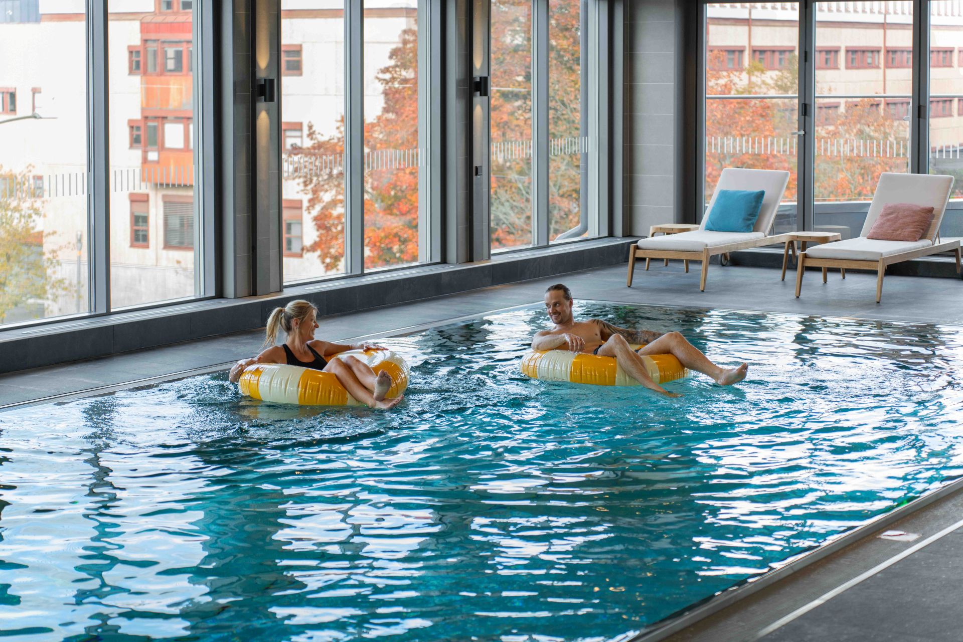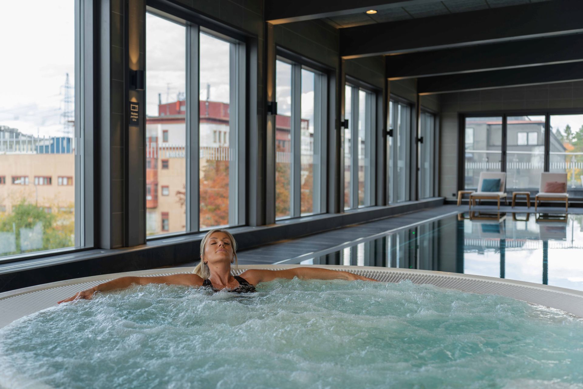 Mon. - Thurs. 11:00 - 21:00 | Fri. - Sun. 09:00 - 21:00 | On public holidays, opening hours may vary.Escape to our inviting spa facilities, thoughtfully designed to promote relaxation and rejuvenation. Immerse yourself in a serene atmosphere while enjoying a revitalizing experience. Our offerings include swimming pool, hydromassage bath, steam room & sauna.